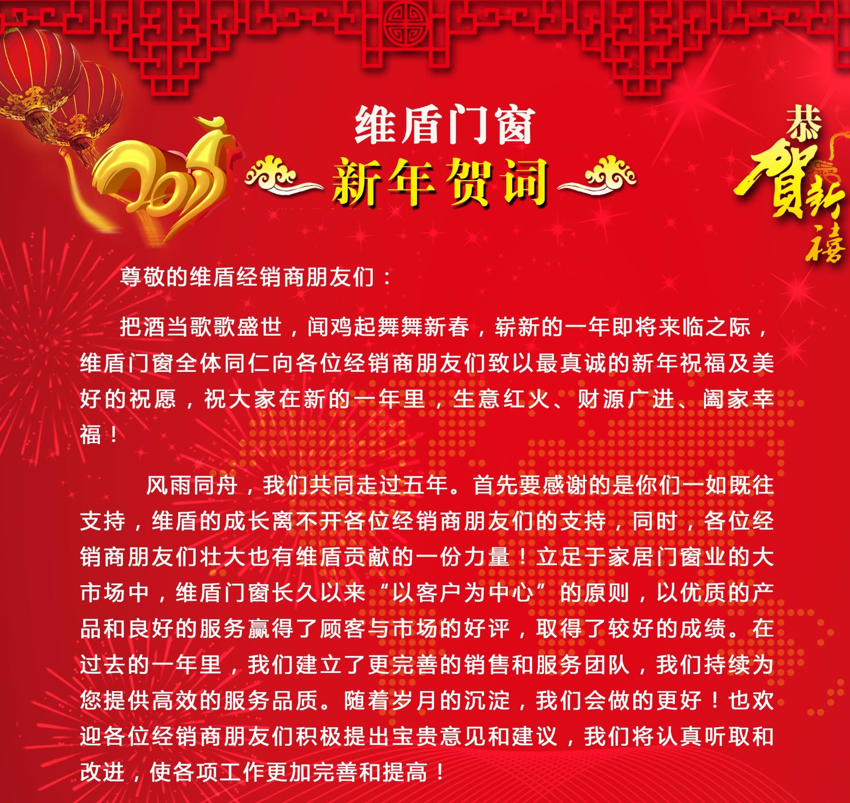 維盾門窗2017年新年賀詞