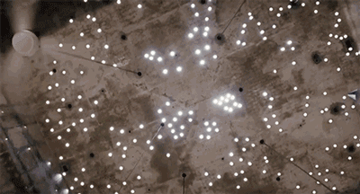 而當你抬頭看時,光又從頂上的小孔透進來,就像一個個圓圓的光斑,形成了滿屋的繁星。