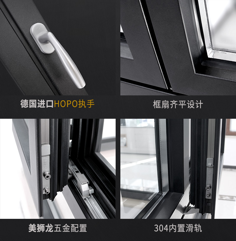 py80平移窗專利五金-美獅龍,獨特的開啟方式、擠壓式關閉,防水更密封,像我們生活當中,飛機,高鐵的艙門關閉方式,都源于這種設計理念。